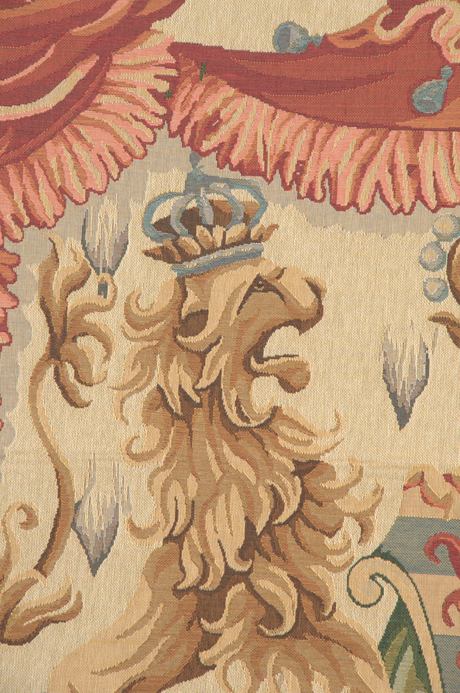 Lion Crest Beige Large Belgian Tapestry Wall Hanging – 75 in. x 55 in. Cotton/Treveria/Viscose/polyester/Mercurise by Charlotte Home Furnishings Inc